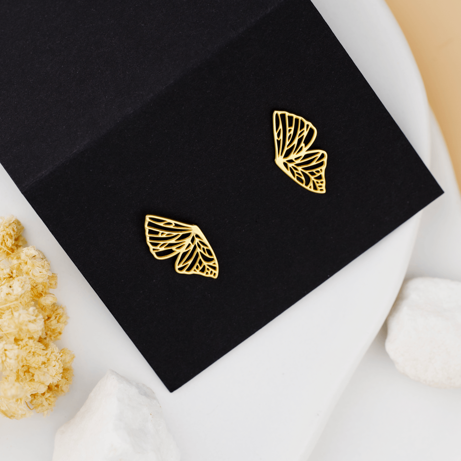 Cercei cu aripi de fluture, realizati din Argint 925 suflat cu Aur 18K. Un model minimalist, gandit pentru purtare zilnica – simplu, curat si usor de integrat in orice stil.