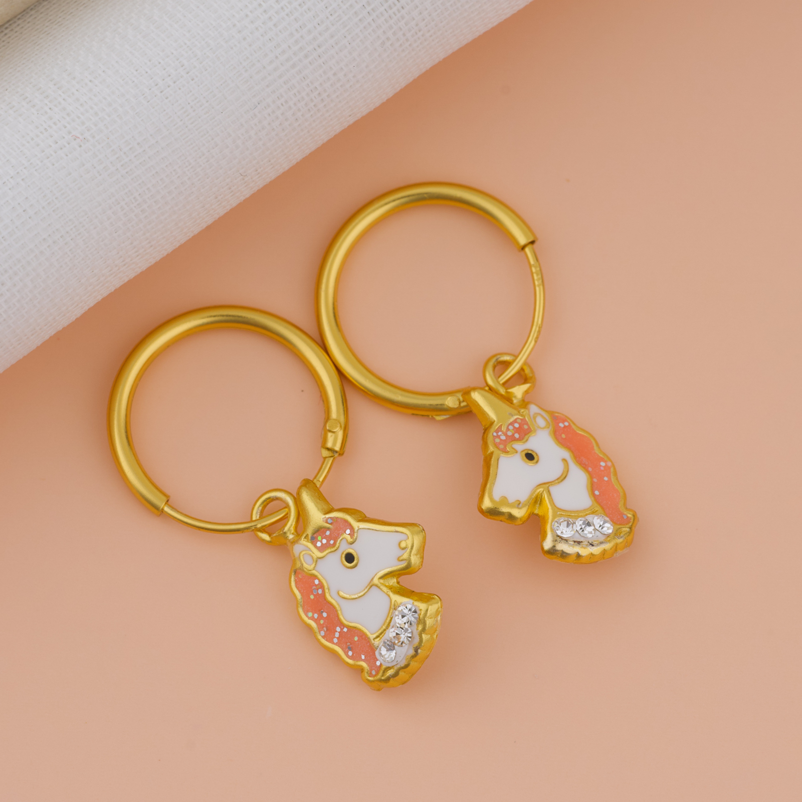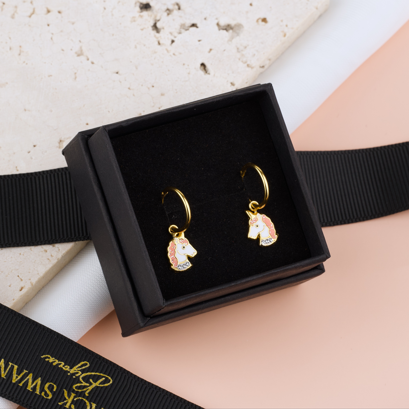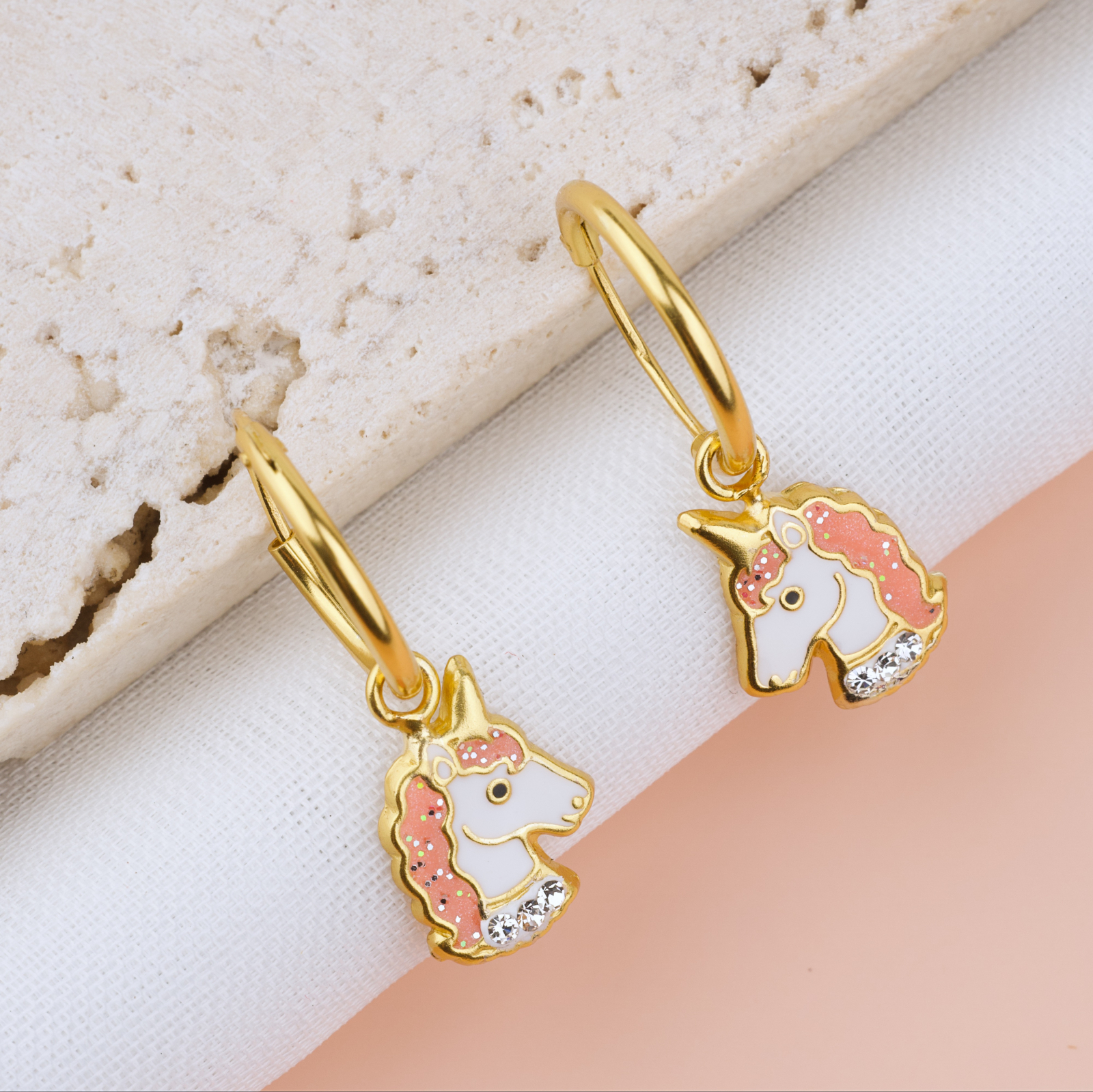 Magici, luminosi si imposibil de ignorat. Cerceii Girly Unicorn combina tortita aurie eleganta cu un pandantiv unicorn adorabil — coama roz glitter, corp alb imaculat si cristale stralucitoare la baza, totul incadrat in contur auriu cald. Un cercel care se misca la fiecare pas si aduce un strop de magie oriunde merge fetita care il poarta. Realizati din argint 925 si placati cu aur 24K, sunt durabili, bine finisati si protejati cu pelicula anticoroziva.