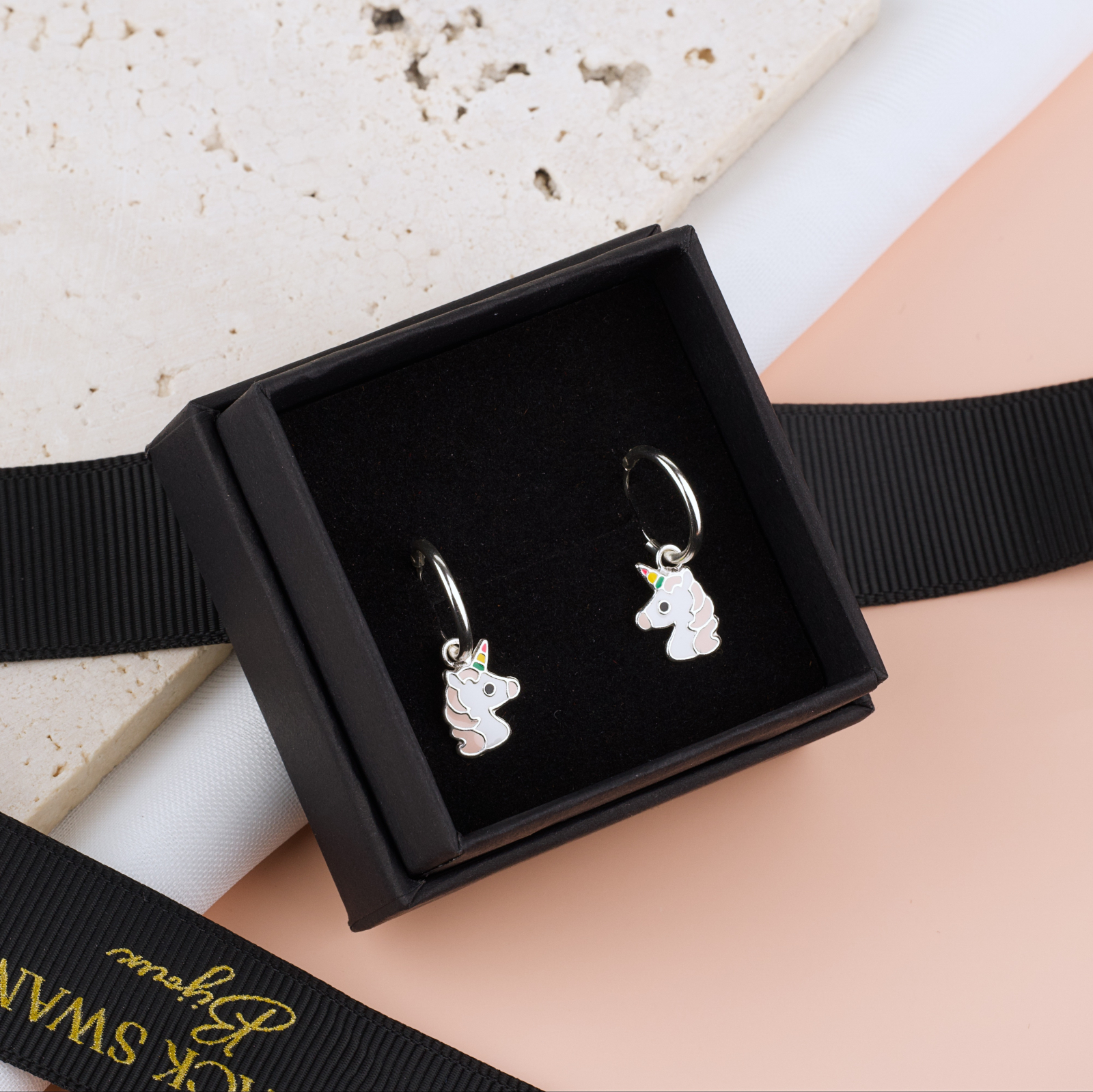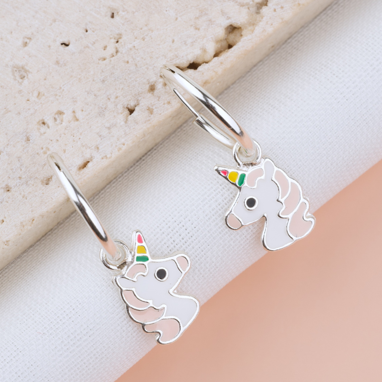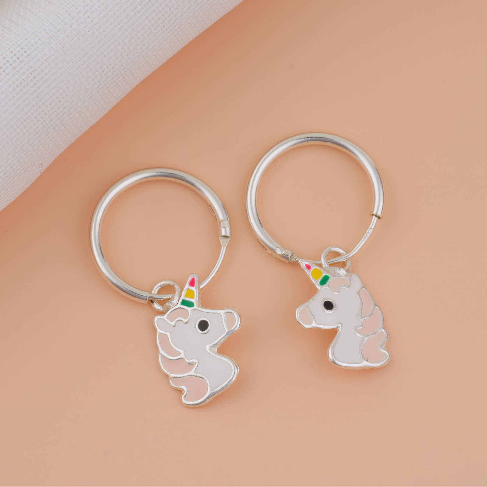 Cercei Girly Unicorn Alb cu Tortita — Argint 925, Placat Argint 999