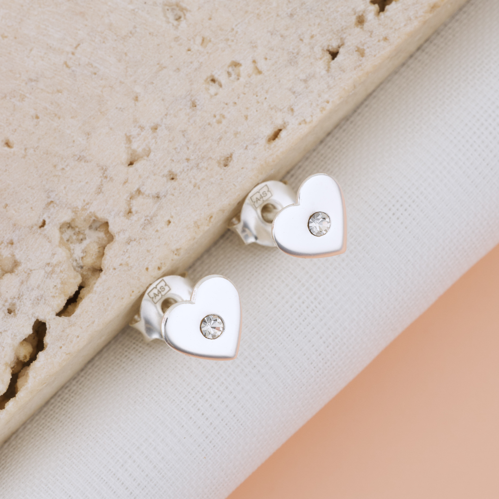 Cercei Inimioara cu Cristal — Argint 925