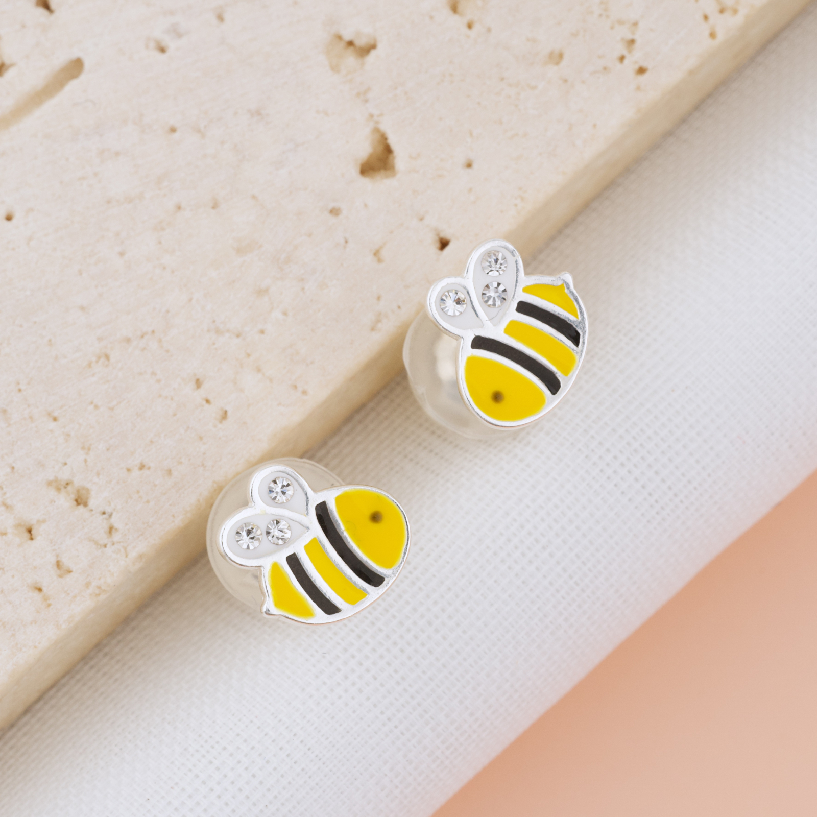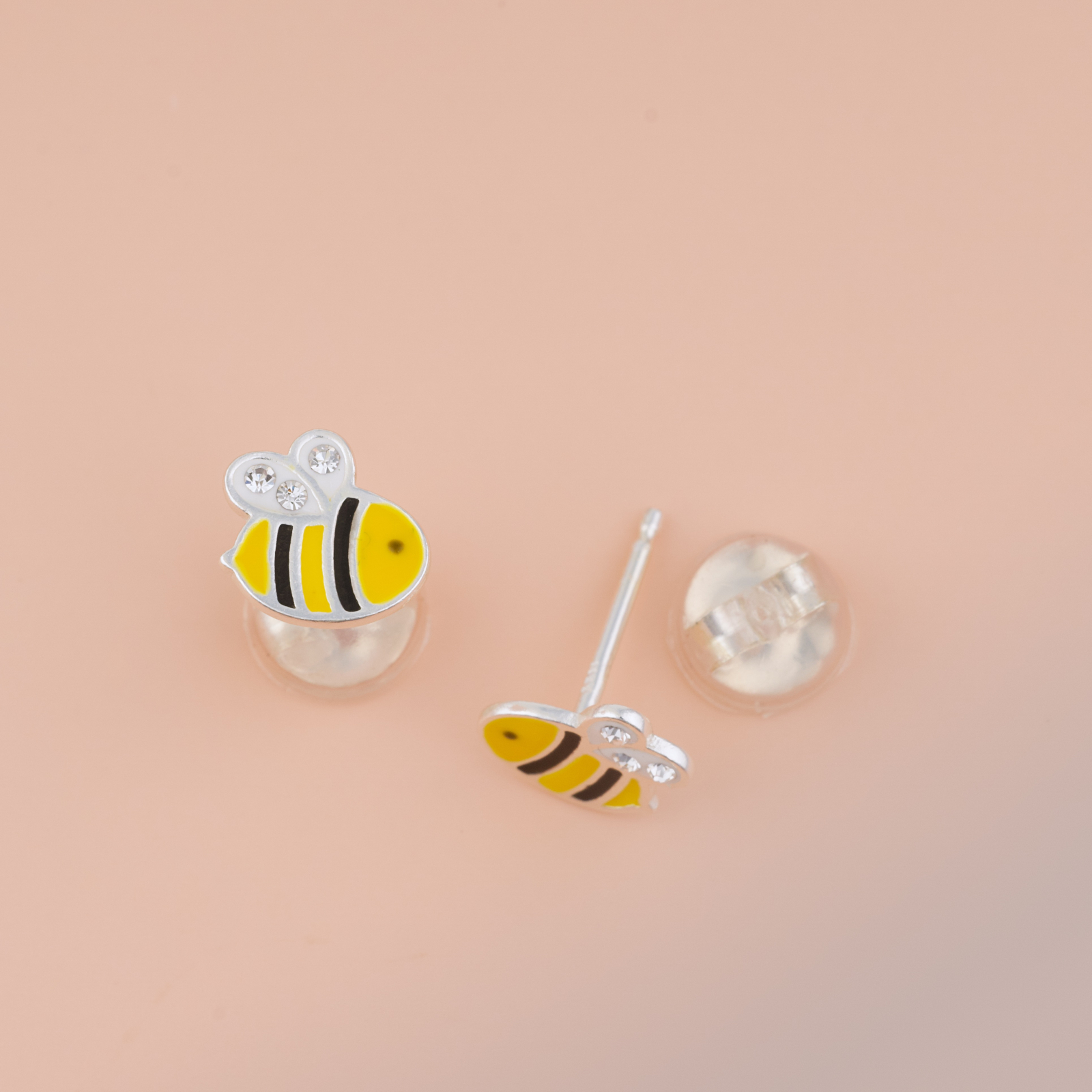 Zumzetul cel mai dulce vine acum in forma de cercei. Cerceii Albinute sunt veseli, colorati si plini de energie — un corp galben cu dungi negre precise, aripioare transparente cu cristale albe stralucitoare si un contur argintiu curat. Un design simplu si iubit, care aduce zambetul pe buze imediat. Realizati prin turnare din argint 925 si placati cu argint 999, sunt durabili, bine finisati si complet siguri — inchizatoarea acoperita cu silicon moale protejeaza urechiusele celor mici toata ziua.