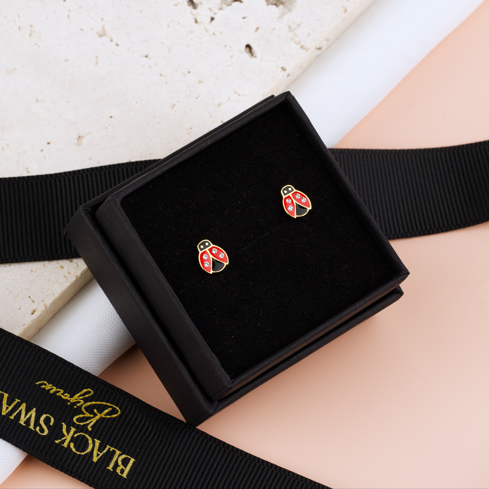 - Placati cu aur 24K — caldura si luxul aurului veritabil, vizibil in conturul auriu al buburuzei