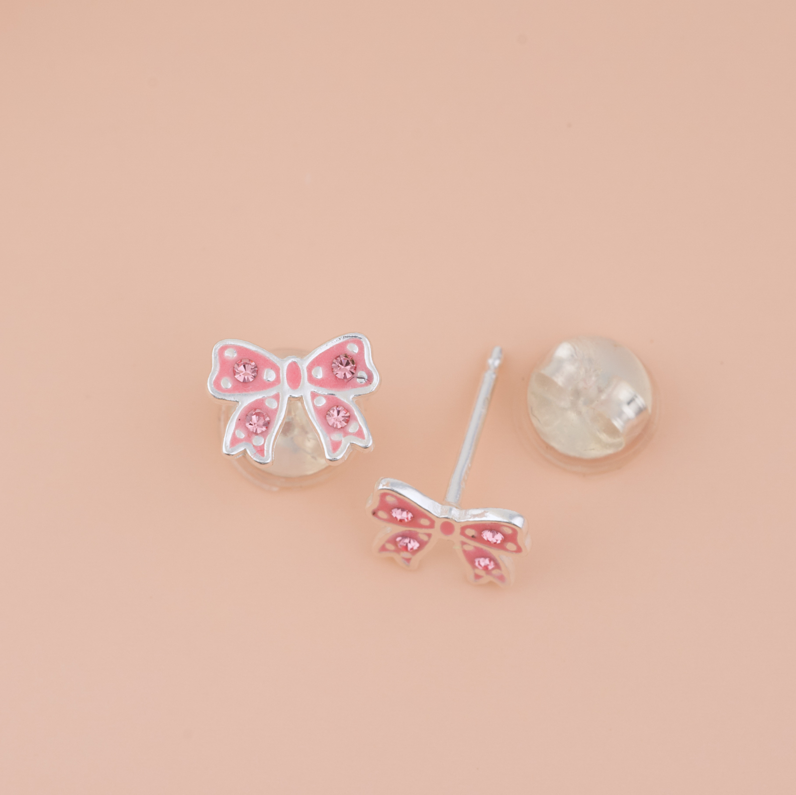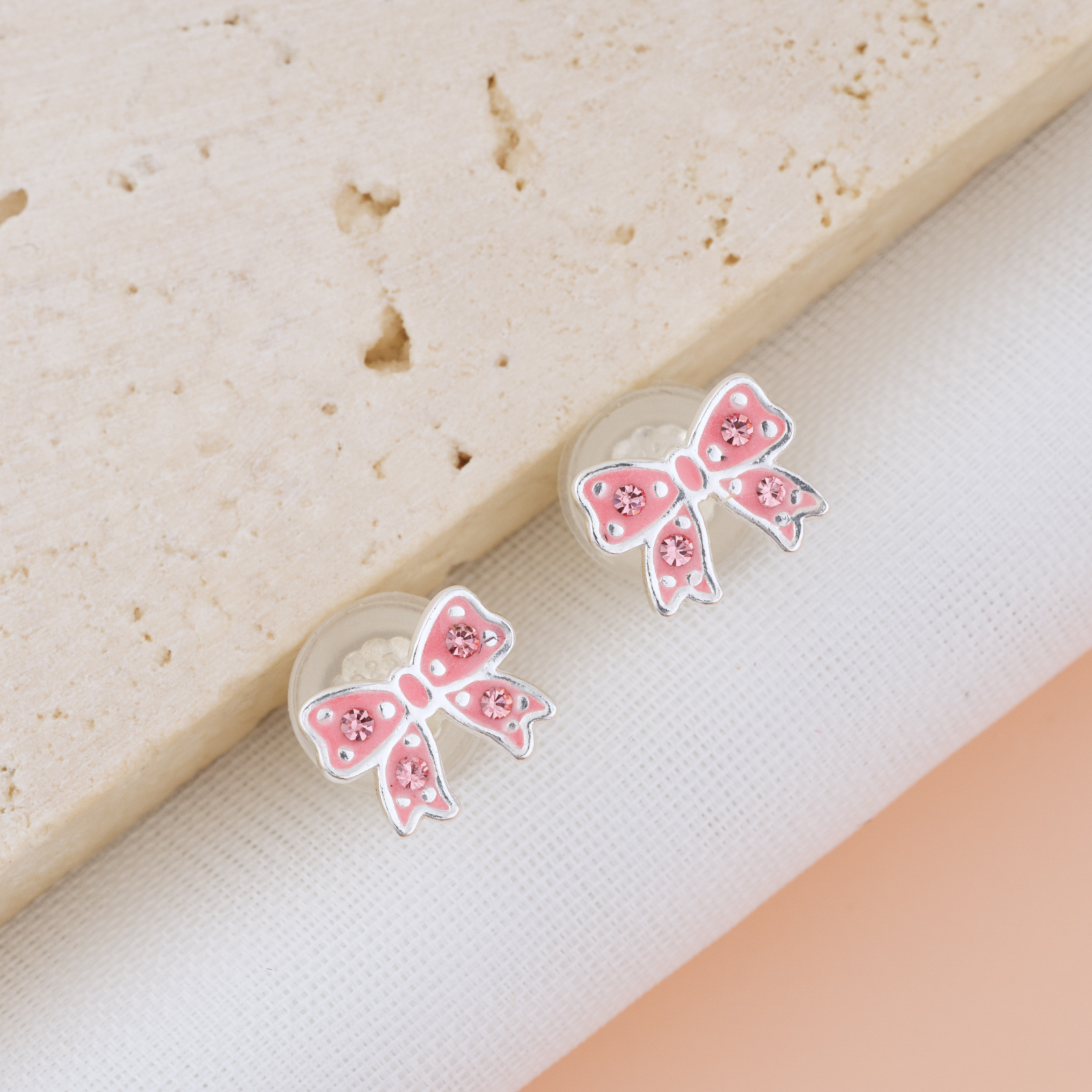 Cerceii Fundita Roz sunt bijuteria aceea pe care orice fetita si-o doreste — o fundita roz cu buline argintii si cristale roz care sclipesc discret, incadrata intr-un contur argintiu curat. Un accesoriu plin de gratie si feminitate, perfect pentru purtare zilnica sau pentru ocazii speciale. Realizati prin turnare din argint 925 si placati cu argint 999, sunt durabili, fin finisati si complet siguri — inchizatoarea acoperita cu silicon moale protejeaza urechiusele celor mici toata ziua.