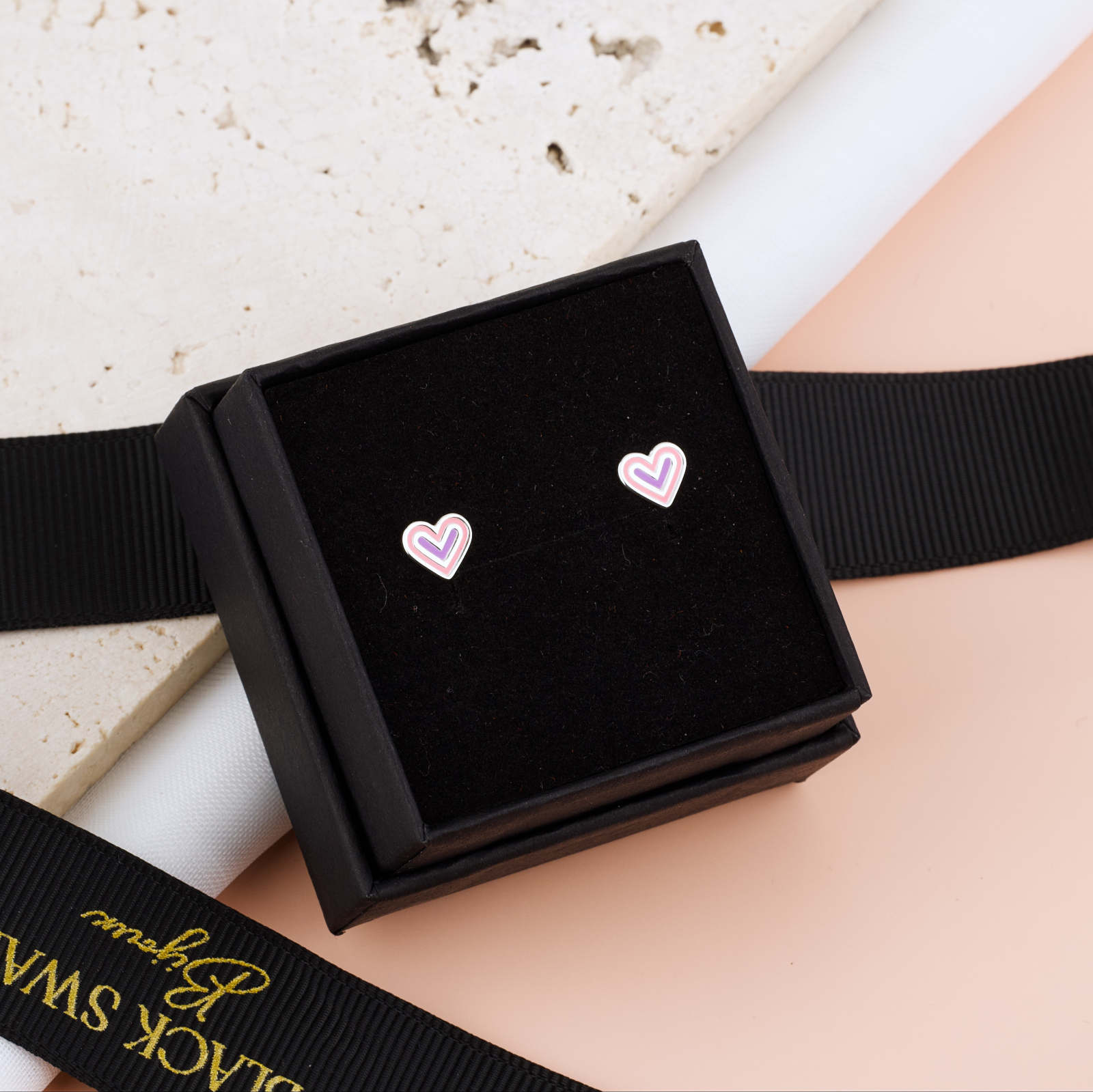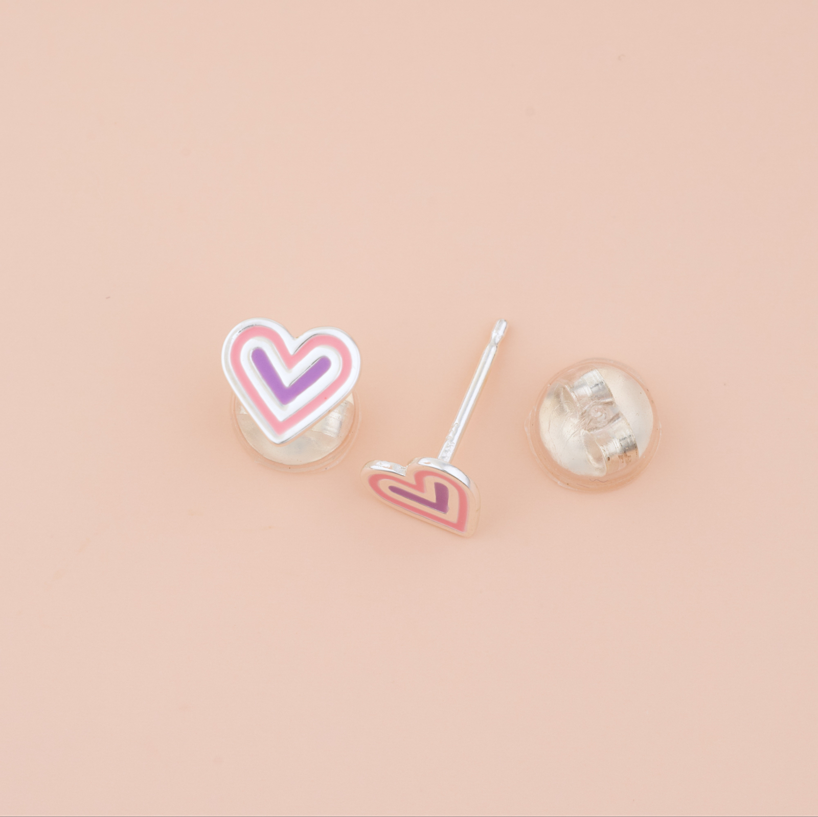 Dulci, moderne si pline de culoare. Cerceii Inimioare Colorate aduc un twist proaspat unui simbol clasic — inima in straturi concentrice de alb, roz si mov, ca un curcubeu pastel prins intr-o forma de dragoste. Un design simplu, dar cu mult caracter, pe care orice fetita il va purta cu drag. Realizati prin turnare din argint 925 si placati cu argint 999, sunt durabili, bine finisati si complet siguri — inchizatoarea acoperita cu silicon moale protejeaza urechiusele celor mici toata ziua. Ajung la tine in ambalaj premium Black Swan Bijoux, gata de daruit, pentru un unboxing de poveste.