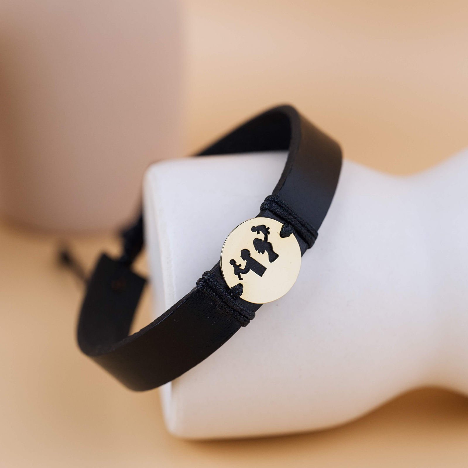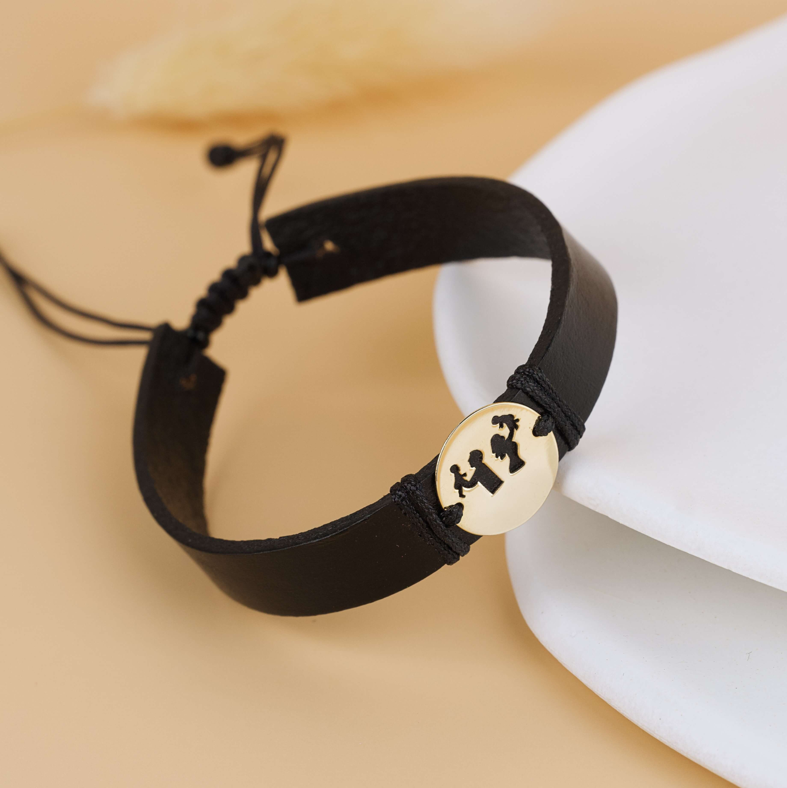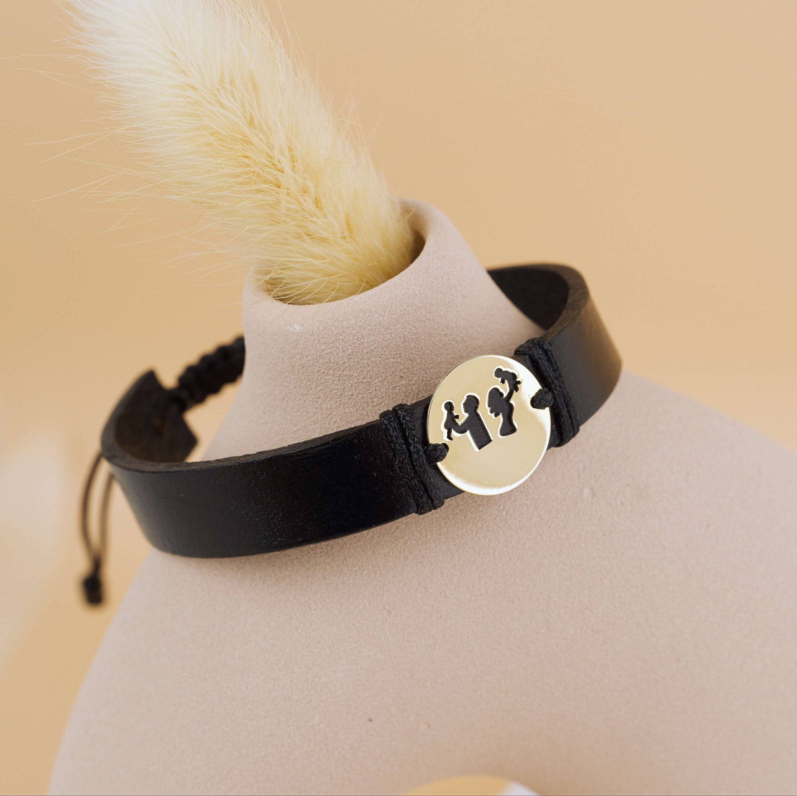 Bratara barbateasca din piele naturala cu banut din Aur 14K – Familia este o bijuterie cu valoare emotionala profunda, creata pentru tatii care isi poarta mereu familia aproape de suflet.