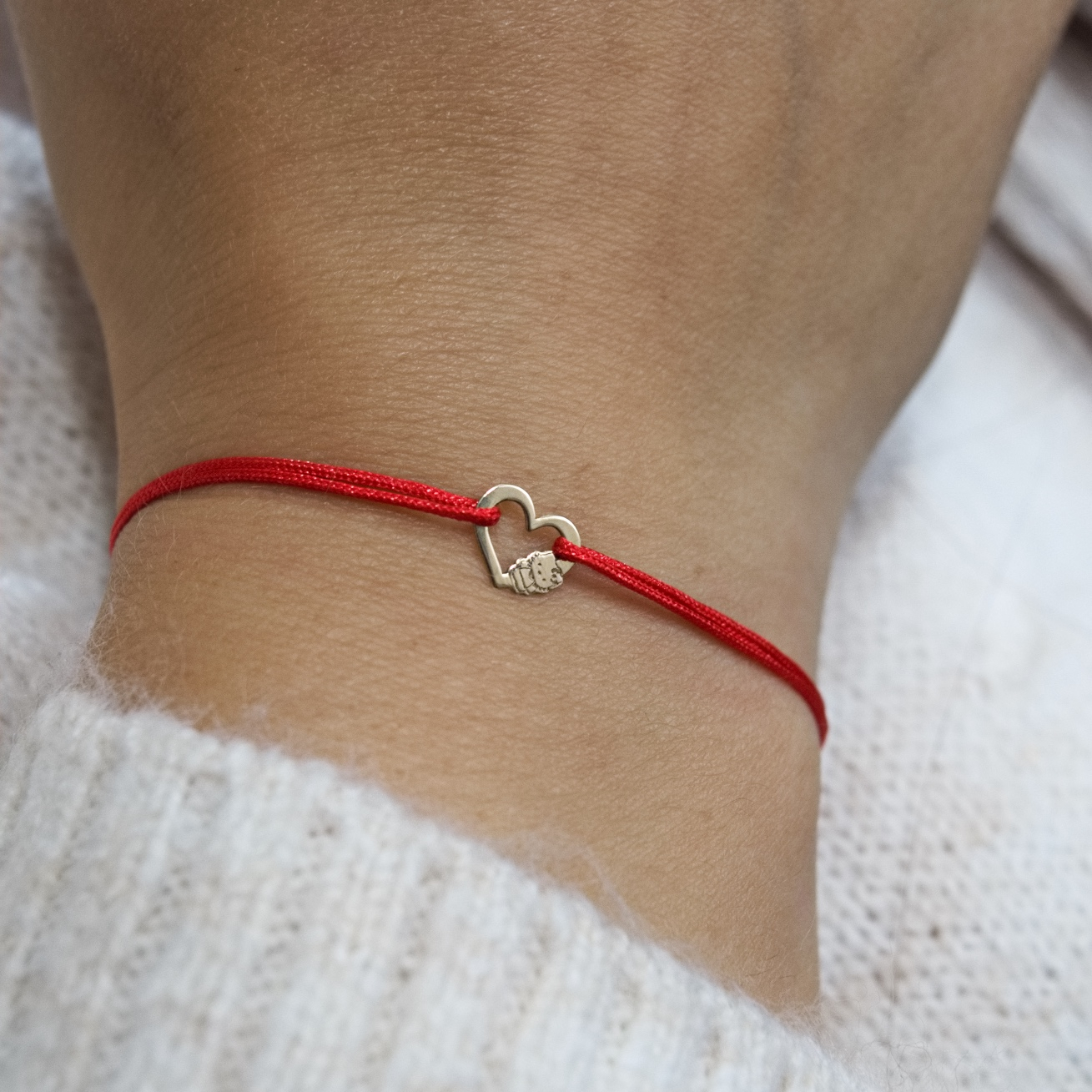 Bratara cu snur inima si Hello Kitty din aur 14K