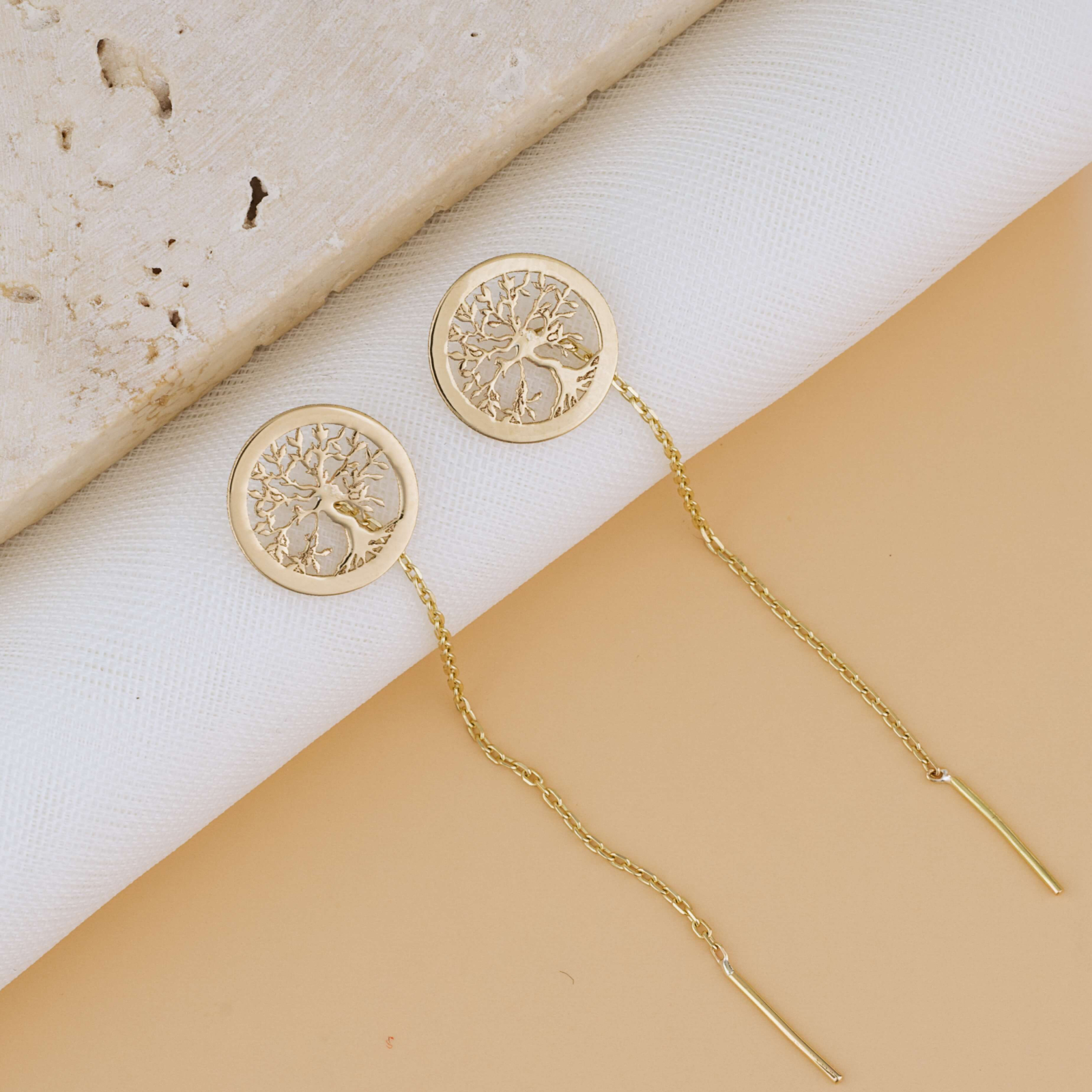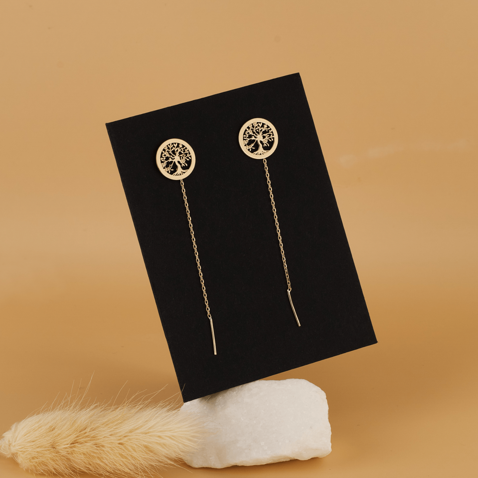 Cercei Lungi cu Lantisor — Copacul Vietii Aur 14K