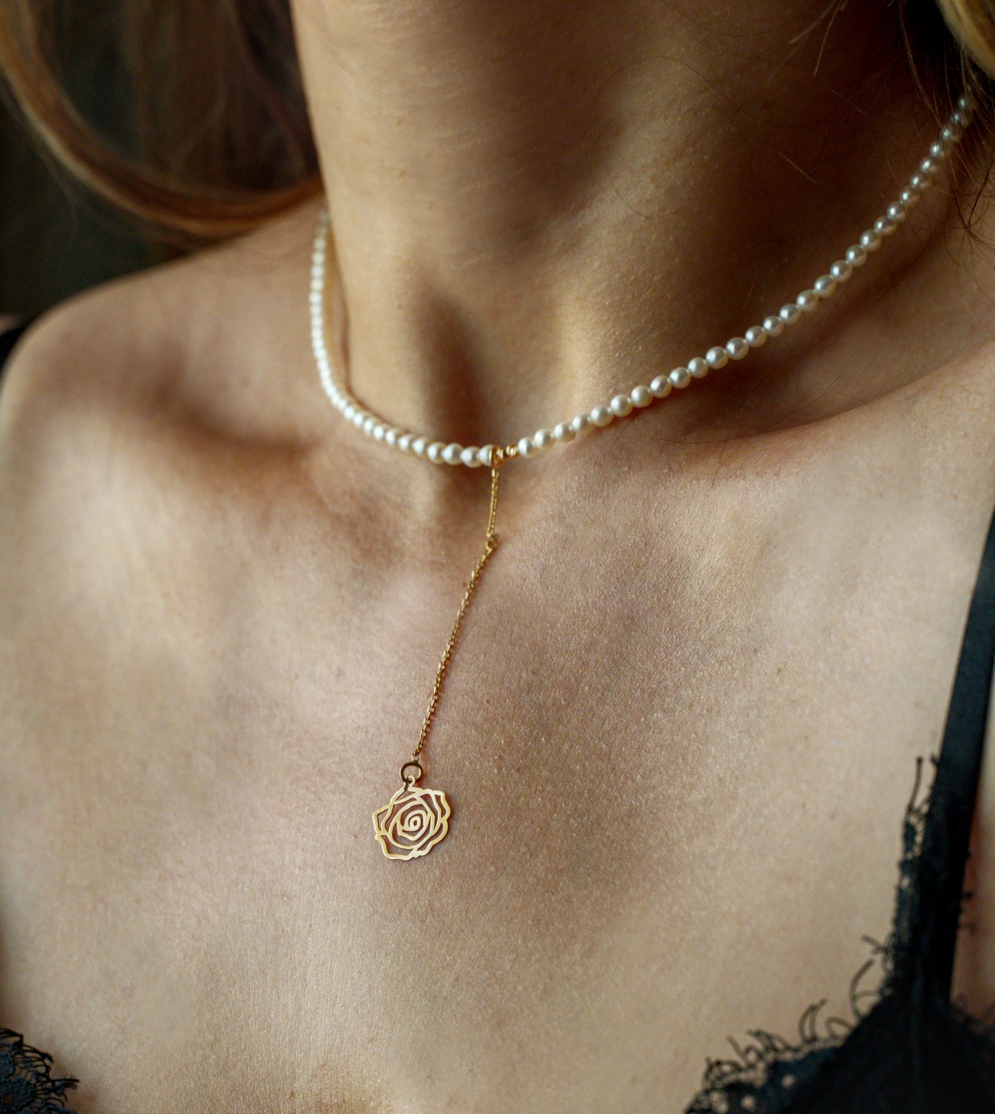 Colier cu perle și inițială din aur – o combinație unică de simbol personal și bijuterie prețioasă.