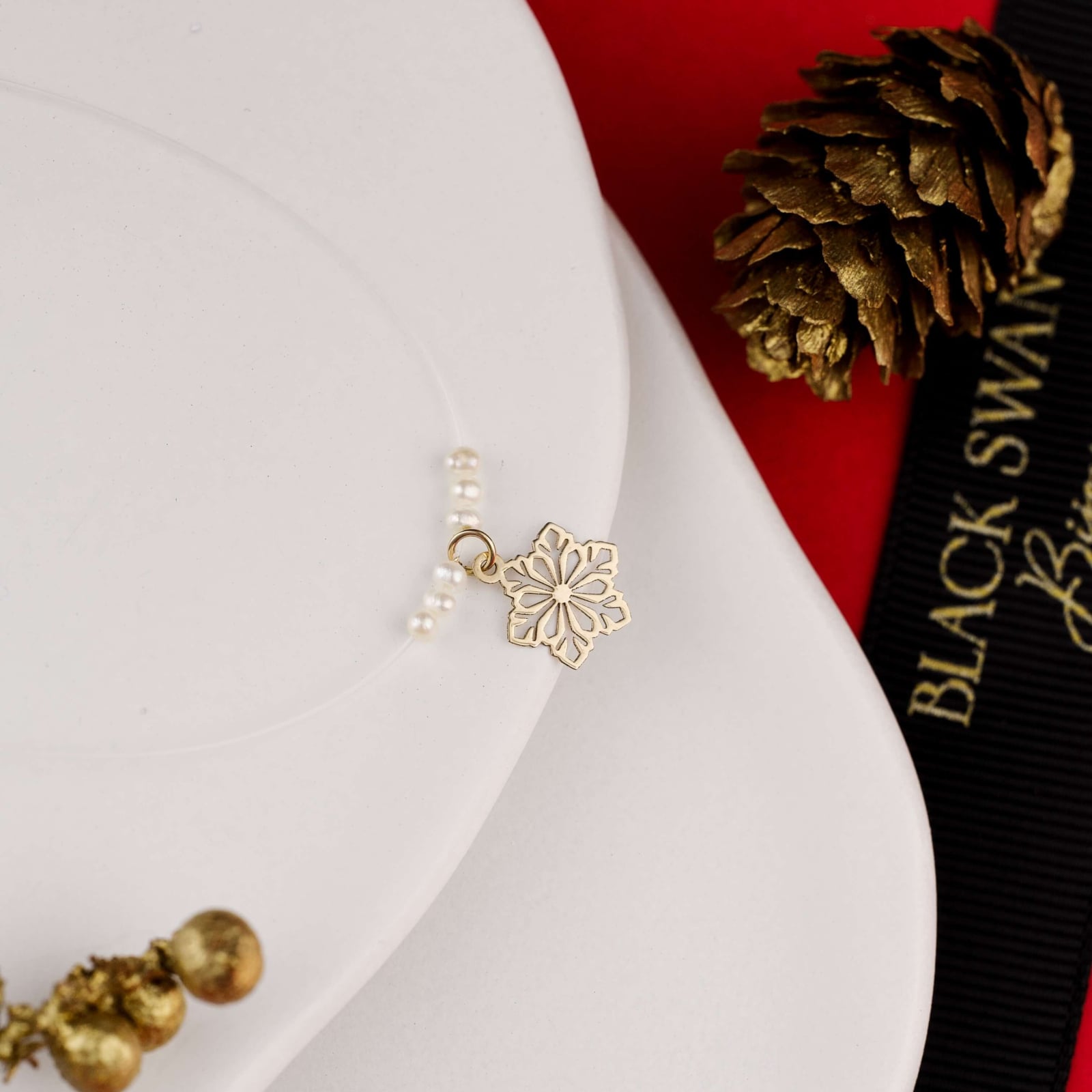 Firul transparent din guta garanteaza confort la purtare, se aseaza frumos pe piele si este aproape invizibil, astfel incat fulgul de nea devine singurul punct de focus, atragand lumina la fiecare miscare. Pandantivul din aur 14K, lucrat cu atentie la detalii, reda finetea si unicitatea fulgului de nea, simbol al puritatii, al unicitatii si al bucuriei din sezonul rece.