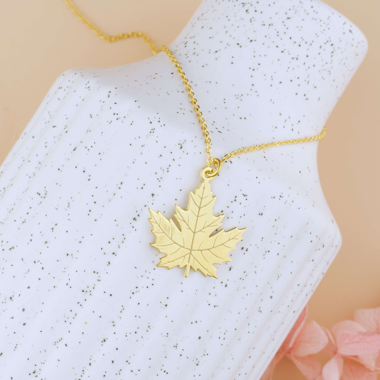 Lantisor fin realizat din Argint 925 placat cu Aur 18K, completat de un pandantiv frunza de artar – o bijuterie eleganta, cu o prezenta discreta, dar cu o simbolistica aparte.