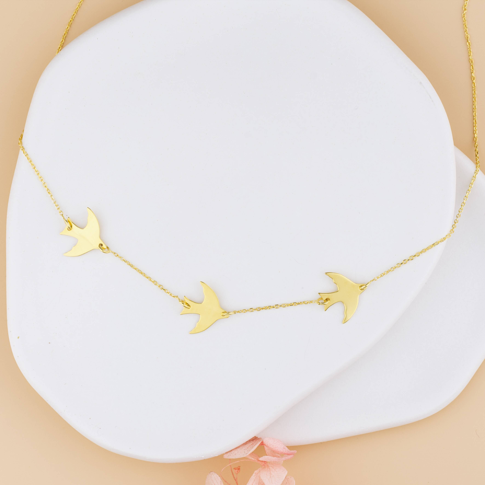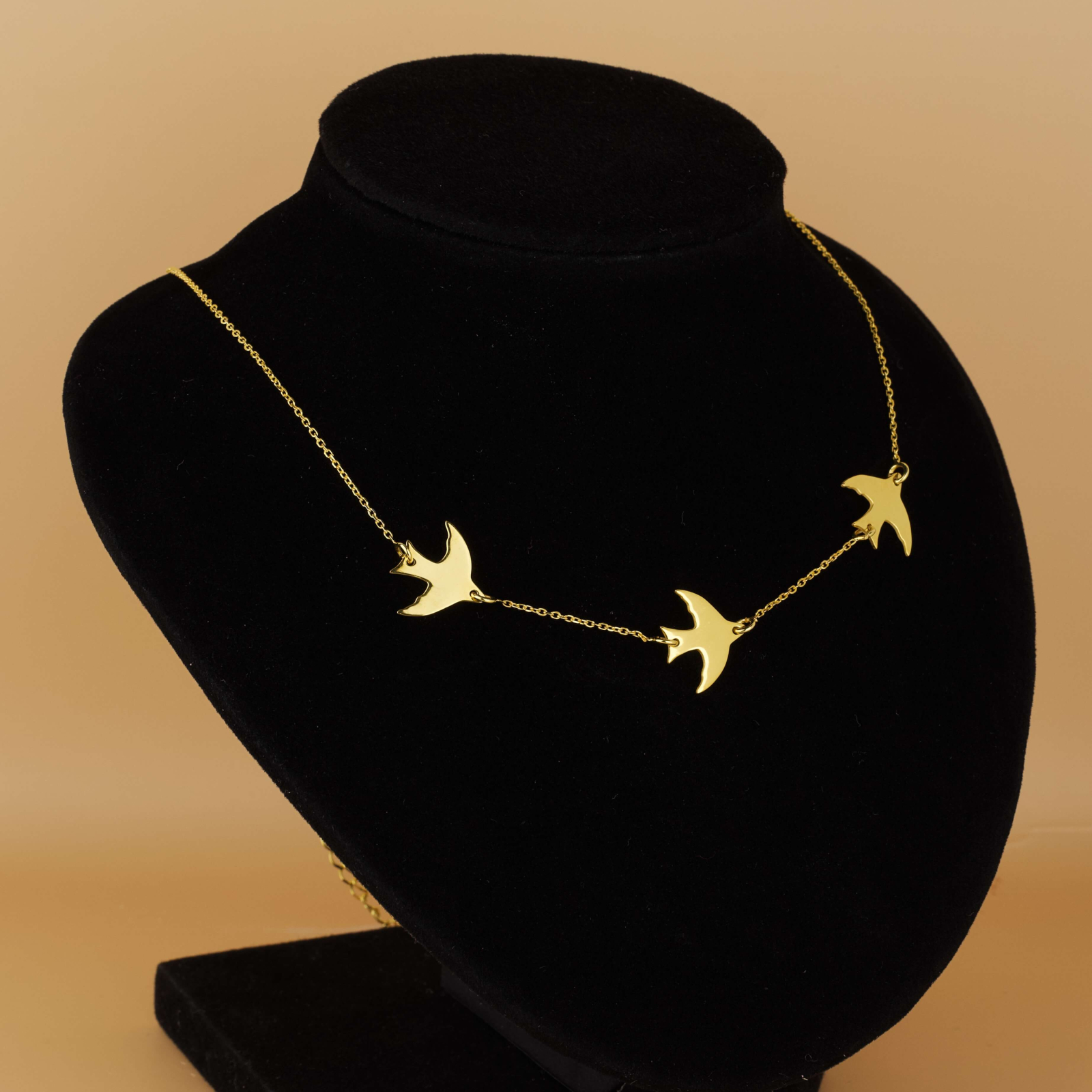 Randunicile sunt integrate natural in structura colierului, creand un efect fluid, ca si cum ar fi in zbor. Este o bijuterie care nu incarca, dar care atrage prin simbol si prin simplitatea bine gandita.